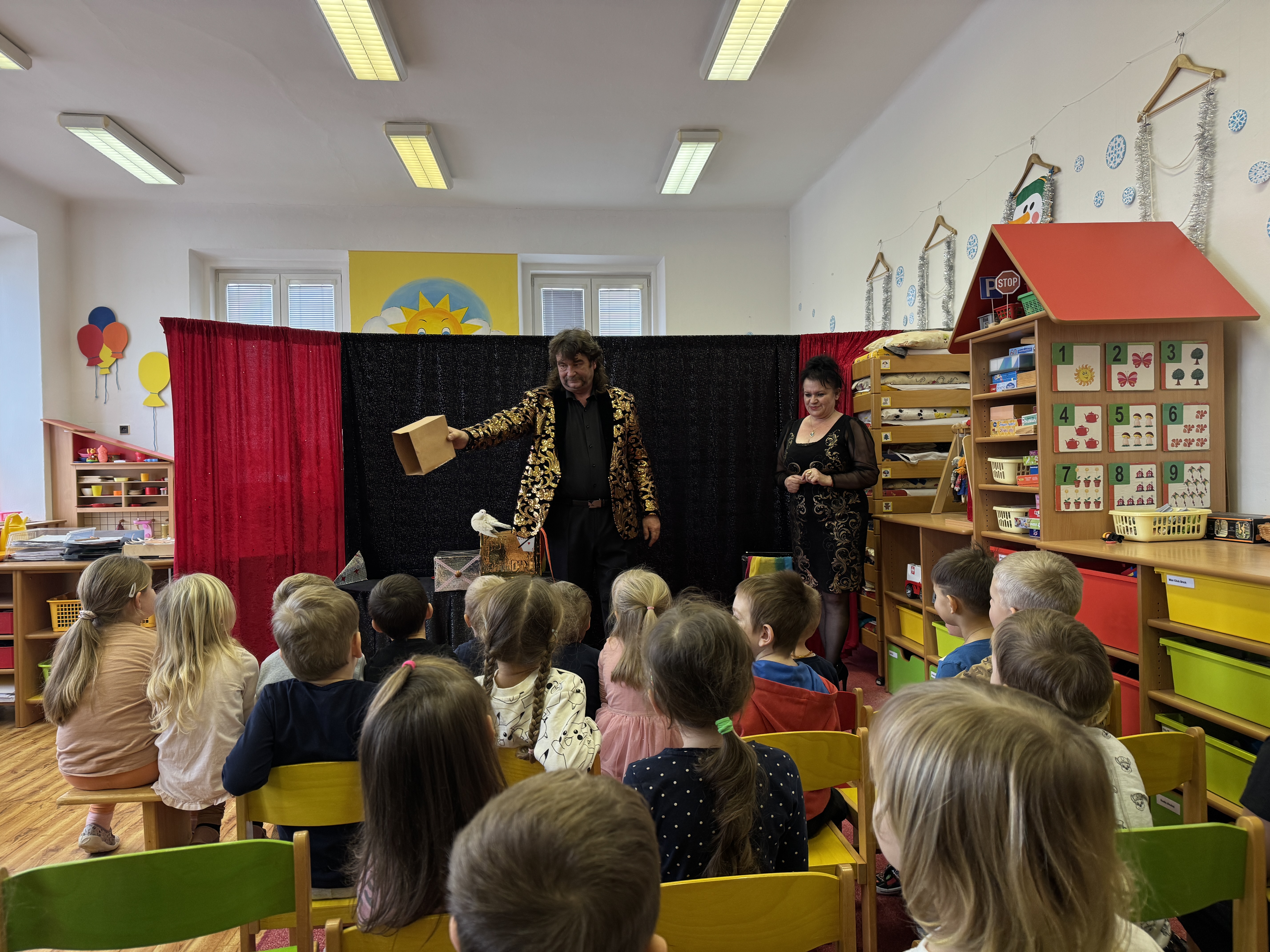 V pátek 24.1. jsme si s dětmi přiblížili svět kouzel a triků. Povídali jsme si o tom, jak kouzla fungují a co vše musí kouzelník umět. Společně jsme se zamýšleli nad tím, jak se dají některé triky vysvětlit. Kouzelnické umění spočívá nejen v rychlých pohybech rukou, ale také v práci s publikem. V rámci projektu OP JAK, jsme právě takové vystoupení mohli shlédnout díky Duu Waldini. Představení bylo skvělou podívanou s nezapomenutelnou atmosférou. Od kouzelných karet přes mizející předměty až po vyčarovanou holubičku a králíka, který měl u dětí velký úspěch. Vystoupení nebylo jen o tricích, ale právě i o kontaktu s publikem. Všichni jsme se bavili, smáli a nechali jsme se vtáhnout do světa, kde nemožné neexistuje.