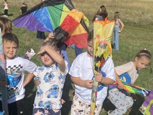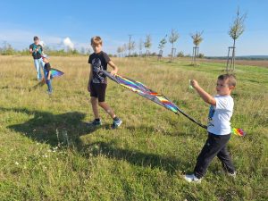 Prvňáčci měli po boku své patrony z osmých tříd, kteří jim ochotně pomáhali nejen při rozmotávání provázků, ale i při honičkách za ulétnutými draky.