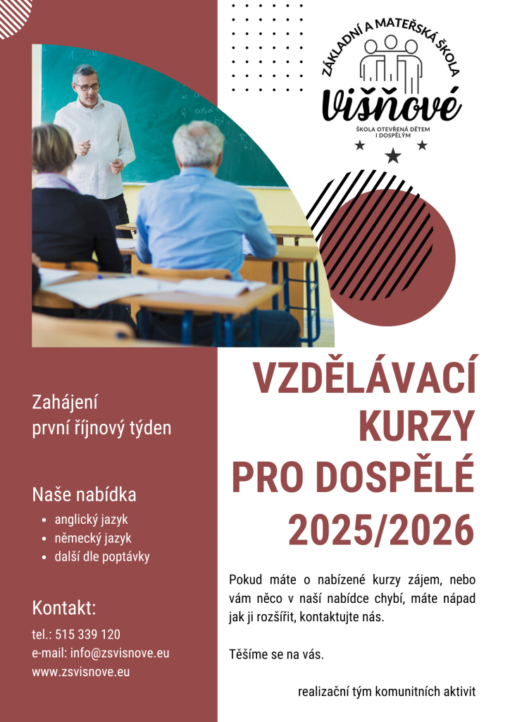 Pozvánka a informace ke vzdělávacím kurzům pro dospělé