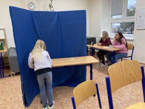Již mnoho let vedeme naše žáky k tomu, aby se aktivně zapojovali do činnosti školy. Jednou z cest, jak toho docílit, je každoročně volený Žákovský parlament, v němž zasedají žáci od čtvrtého do devátého ročníku. Letošní volby se konaly v pondělí 6. října, tedy hned po těch oficiálních parlamentních, takže děti absolvovaly prakticky totéž, co jejich rodiče a prarodiče. Volilo se ve volební místnosti (k tomuto účelu upravená učebna) za přítomnosti volební komise, která dohlížela na plynulý a právoplatný průběh voleb. Až budeme znát výsledky, určitě Vám všechny členy žákovského parlamentu představíme. 🙂