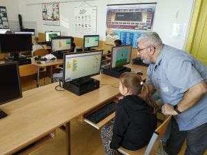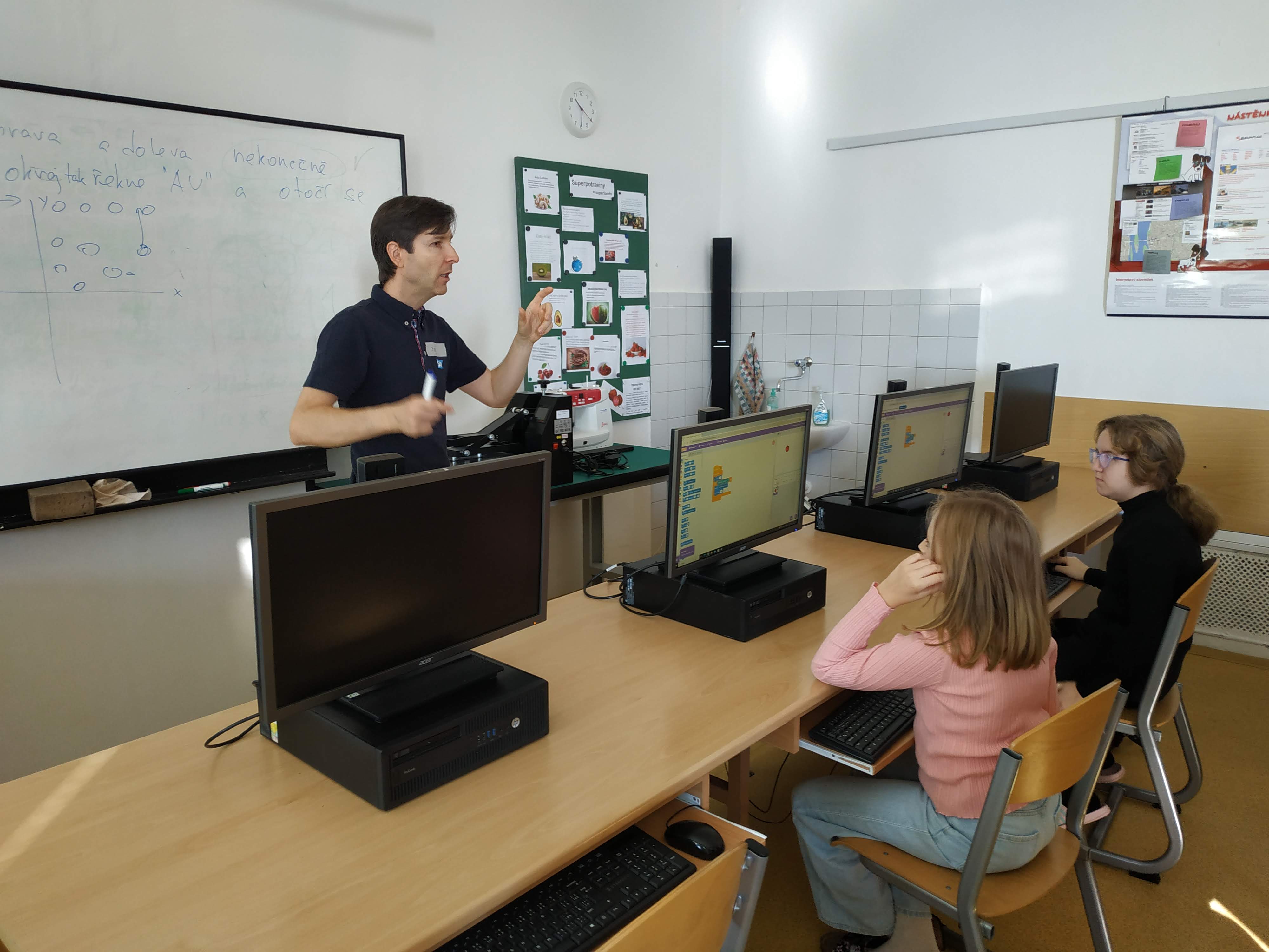 Naši žáci se čím dál častěji mohou ve škole potkávat s odborníky z praxe a to také díky projektu STEM do výuky, jehož jsme součástí. Dnes za páťáky přijeli programátoři ze společnosti SAP ČR, kteří je během dopoledne provedli základy programování v prostředí SCRATCH. Žáci si po úvodu, který byl věnován technologiím v běžném životě a práci programátora, prakticky vyzkoušeli naprogramovat dvě jednoduché hry, což mnohé z nich naprosto pohltilo. Využili při tom svoji kreativitu, schopnost řešit problémy i logické myšlení.