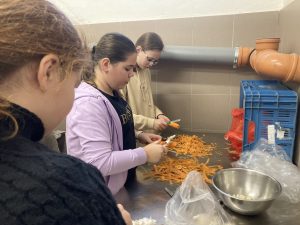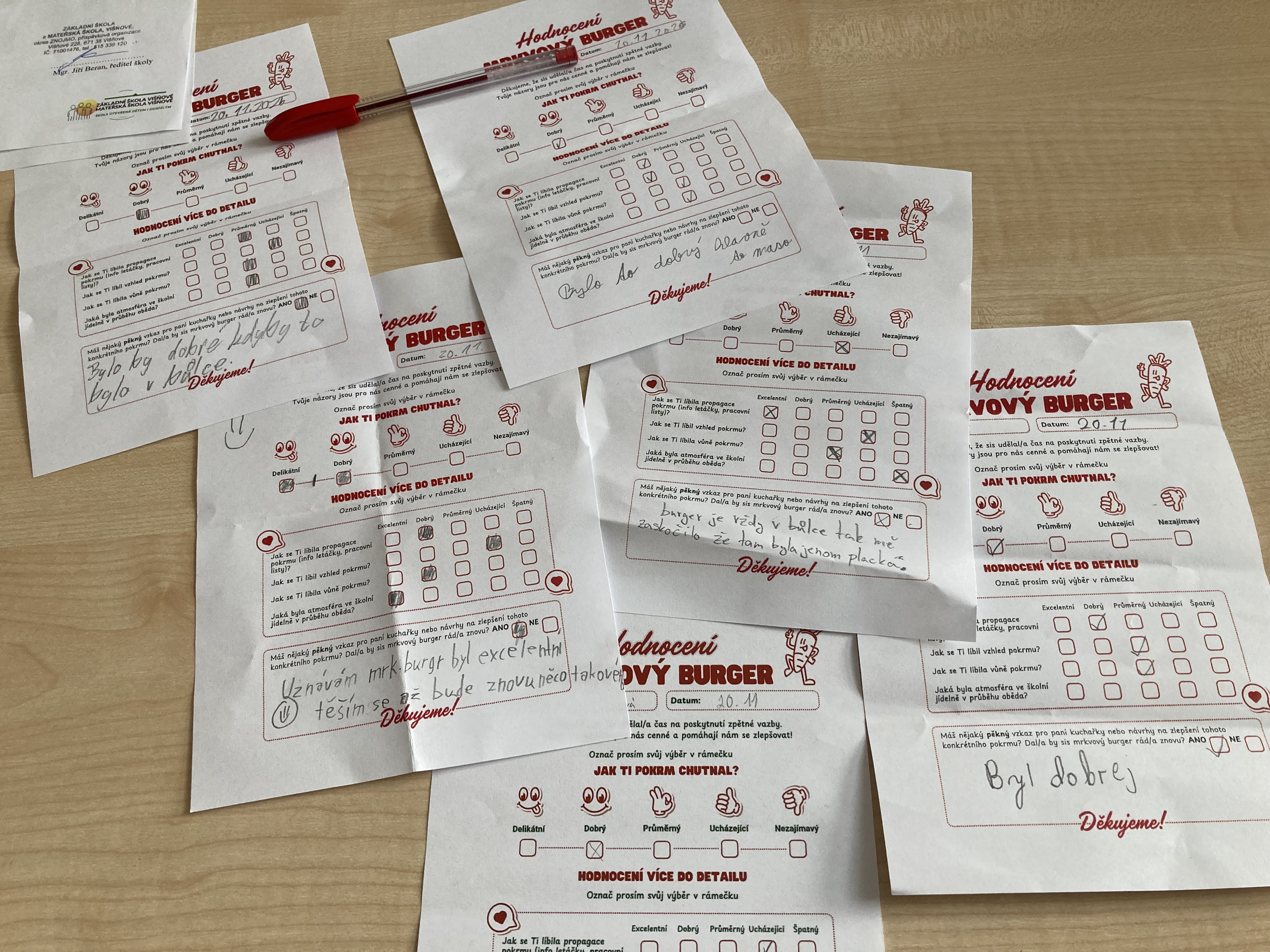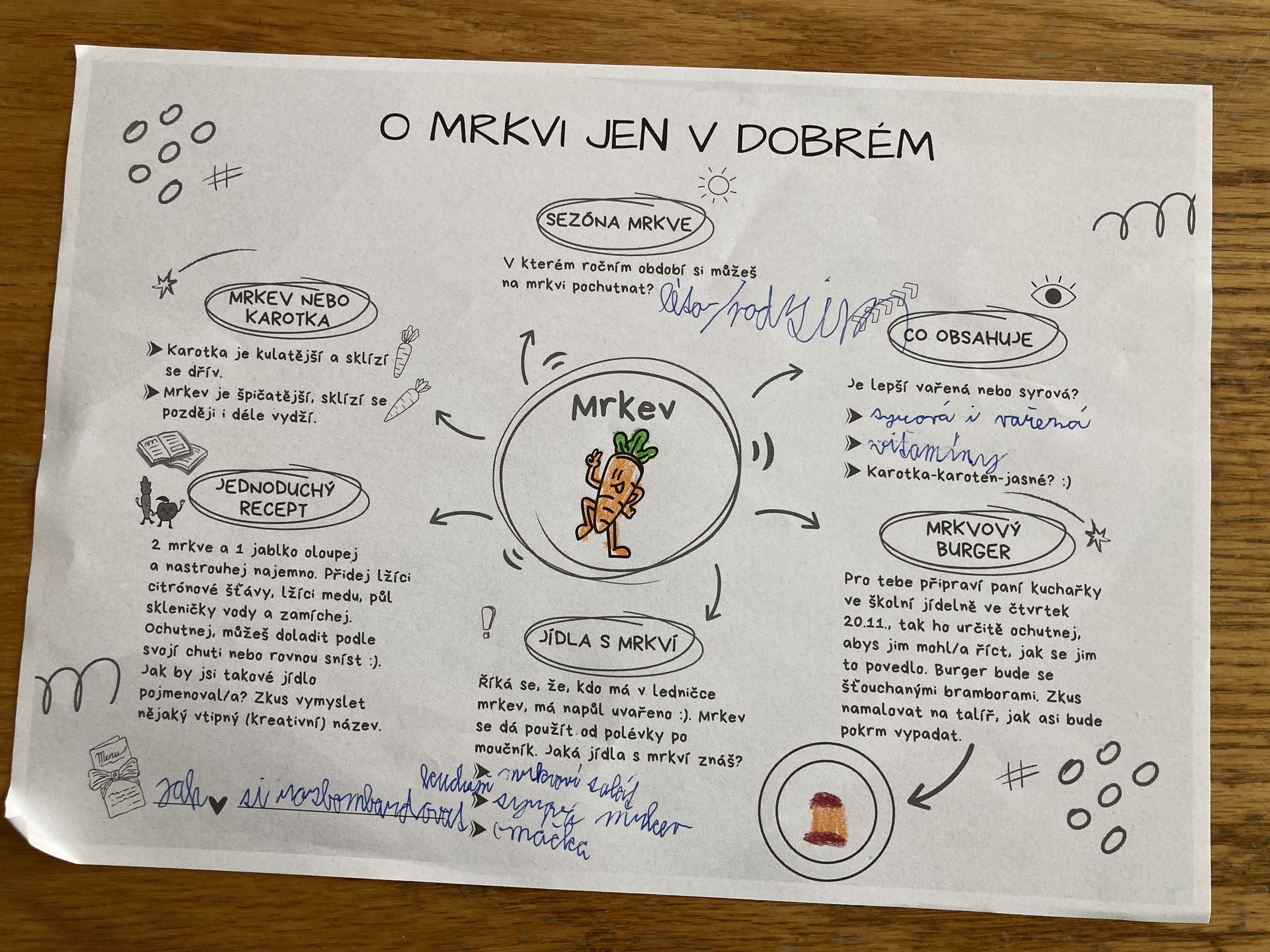 Ve čtvrtek 20. listopadu měli všichni, kdo se stravují v naší školní jídelně, možnost ochutnat úplně nové jídlo – mrkvový burger. Aby byla tato novinka dětmi co nejlépe přijata, proběhlo předem několik kroků. Byl připraven a mezi žáky distribuován informační letáček o tom, jaké suroviny takový mrkvový burger obsahuje, a věřte, že to jsou samé dobré a zdraví prospěšné suroviny (i Bio). Prvostupňovým dětem byl určen pracovní list o mrkvi s videem a vznikl také soubor pravidel naší školní jídelny, s nimiž byli všichni žáci seznámeni. Protože příprava tohoto nového jídla je technologicky i časově náročná, nabídlo několik děvčat ze 7. třídy paním kuchařkám pomoc s čištěním zeleniny, což muselo proběhnout den předem, čili ve středu. A pak přišel čtvrtek. Od rána se školou linula velmi příjemná vůně a všichni se těšili, až tu novinku ochutnají. Někomu mrkvový burger chutnal velmi, někomu míň a někomu vůbec, což jsme se dozvěděli z hodnotících dotazníků. Je skvělé, že naše paní kuchařky zkouší vařit nová a neotřelá jídla, za to jim za všechny strávníky děkujeme, a také je skvělé, že čtyřicet lidí by si mrkvový burger dalo s chutí znovu. Už teď jsme zvědaví, jakou novinku ochutnáme v prosinci. 🙂