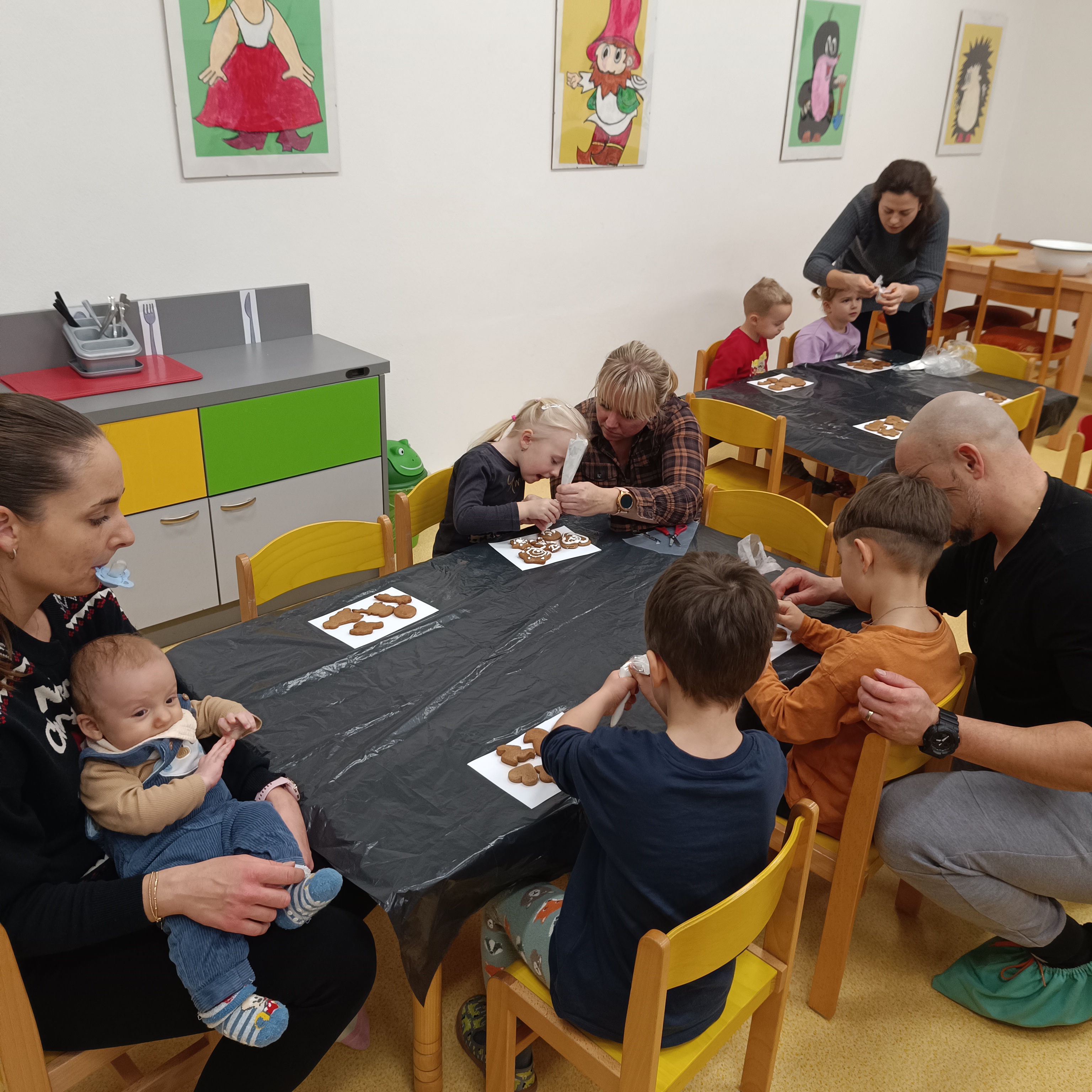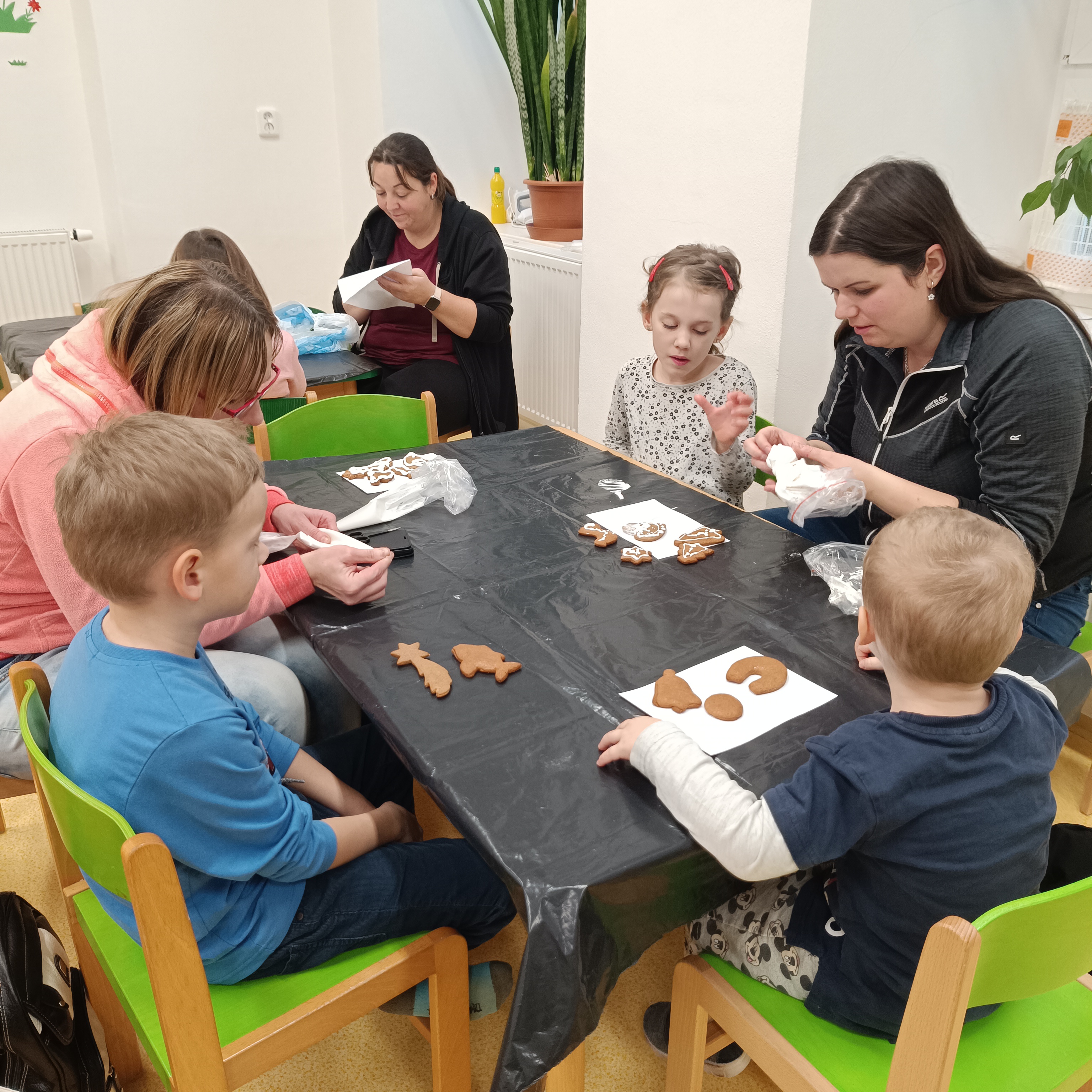 Ve středu 3. 12. se v naší Mateřské škole uskutečnily pracovní dílničky s názvem Vánoční hrátky. Společně s dětmi a jejich rodiči jsme si užili příjemné tvořivé odpoledne, které bylo plné vánoční atmosféry. Hlavní činností bylo zdobení perníčků, které si děti v předchozích dnech samy upekly v naší MŠ. Rodiče i děti ozdobovali perníčky polevami a tím vznikaly krásné a originální kousky. Na závěr si děti z papíru vytvořily vánoční stromeček, který si dozdobily barevnými hvězdičkami. Odnášely si tak domů nejen vlastní výtvor, ale i spoustu hezkých zážitků. Celé odpoledne se neslo v duchu tvoření, vánoční nálady a společné pohody. Děkujeme všem rodičům, kteří se zapojili, a těšíme se na další společné akce.