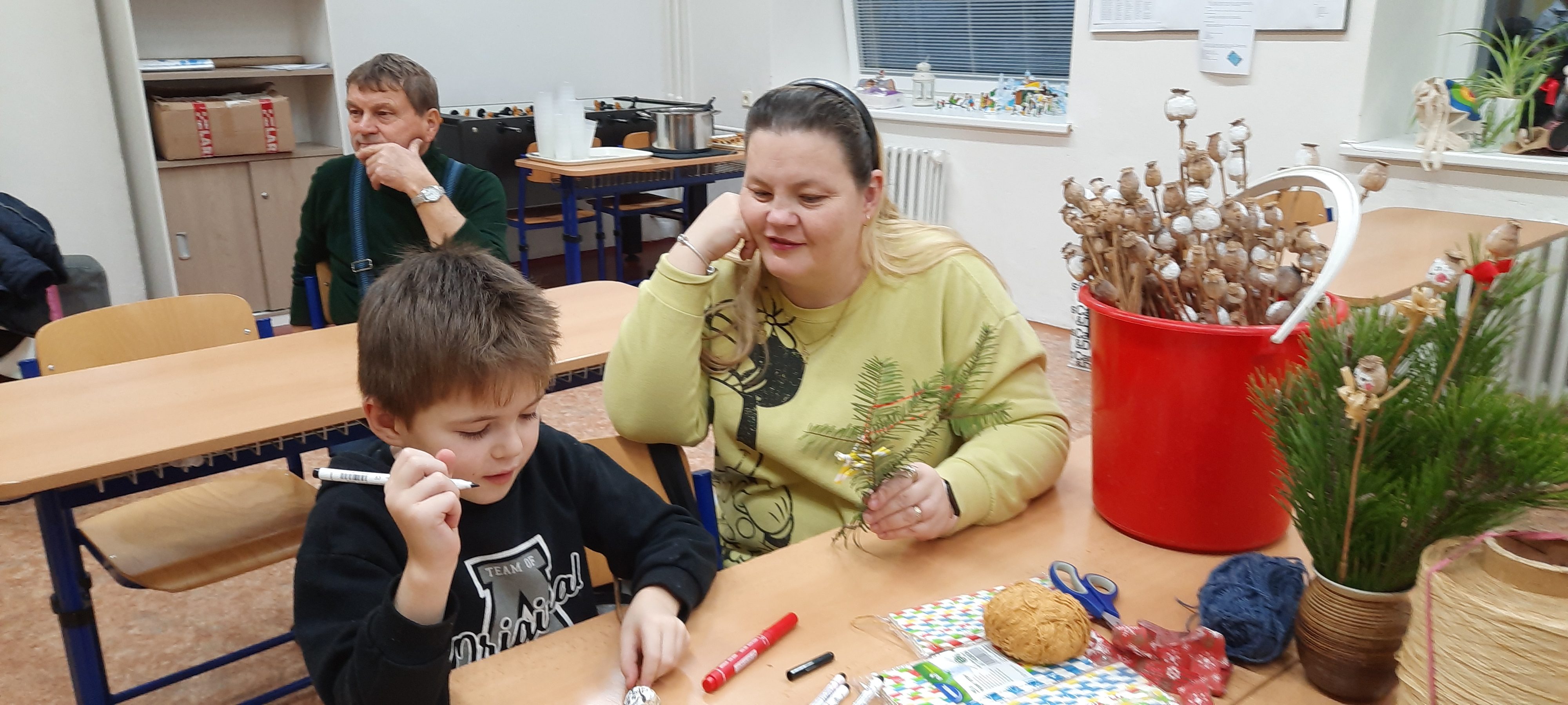 Dne 4.prosince právě na svátek svaté Barbory se sešli ve škole všichni příznivci Vánoc a vánočního tvoření. Děti se svými rodiči a prarodiči prožili příjemný podvečer při vůni jehličí a vánočního čaje. Domů si odnesli vánoční ozdoby, které si sami vyrobili a pěkný pocit z celého setkání.