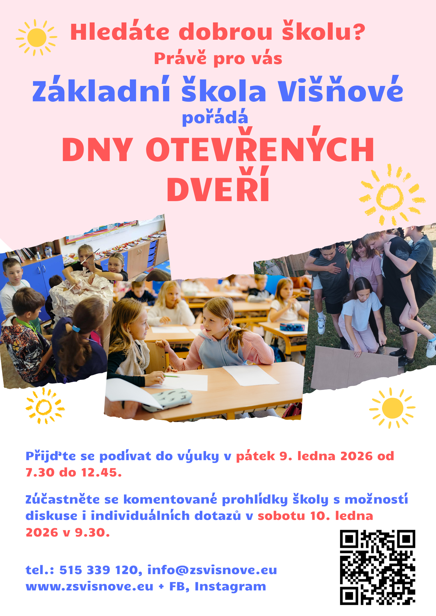 Aktuality Z činnosti školy Dny otevřených dveří 5.1.2026 Jiří Beran Vážení přátelé, jestli se rozhodujete, do které školy zapíšete Vaše dítě, využijte naše pozvání na Dny otevřených dveří, které se konají v pátek 9. ledna a v sobotu 10. ledna 2026. Bližší informace následují. Těšíme se na Vás.