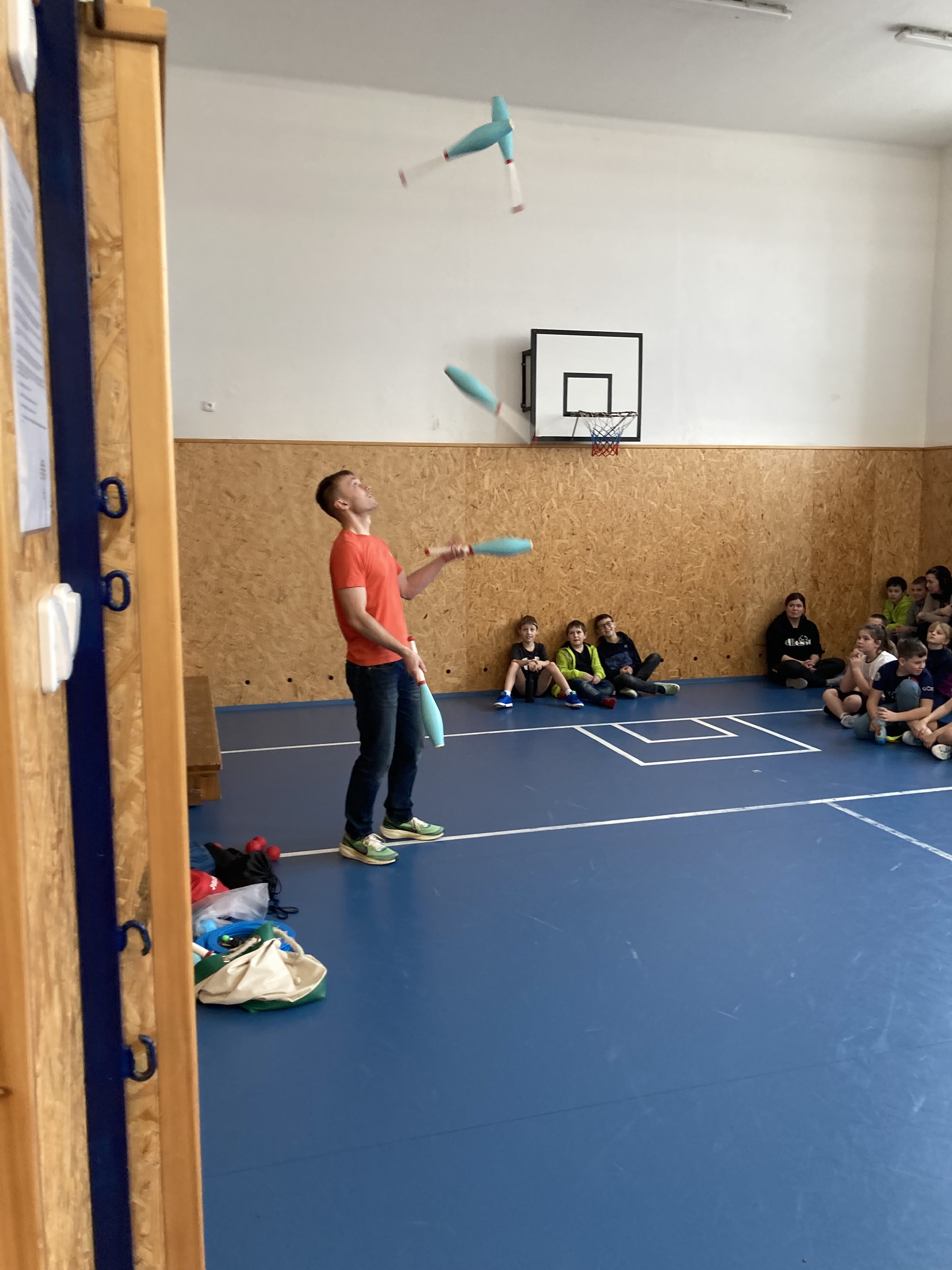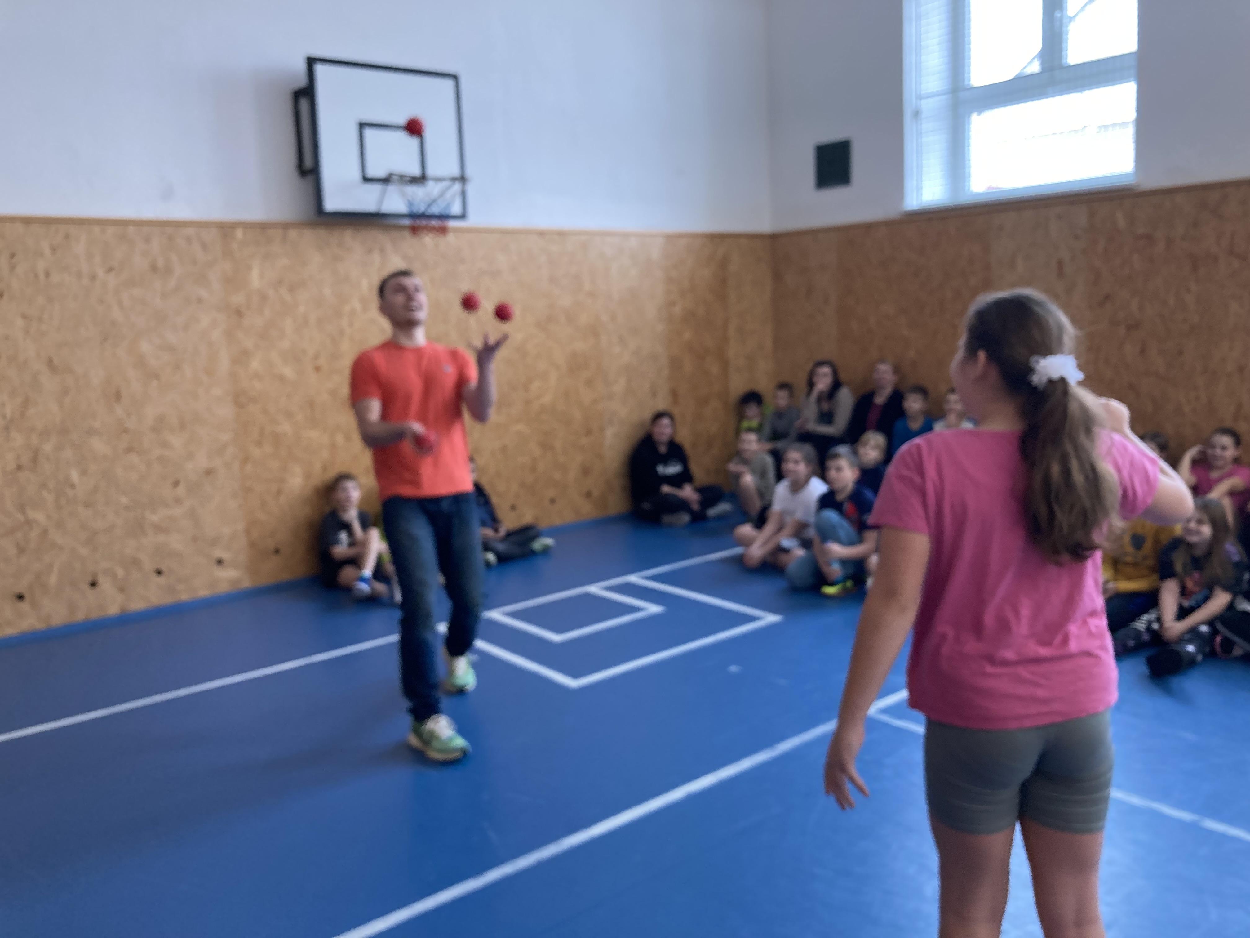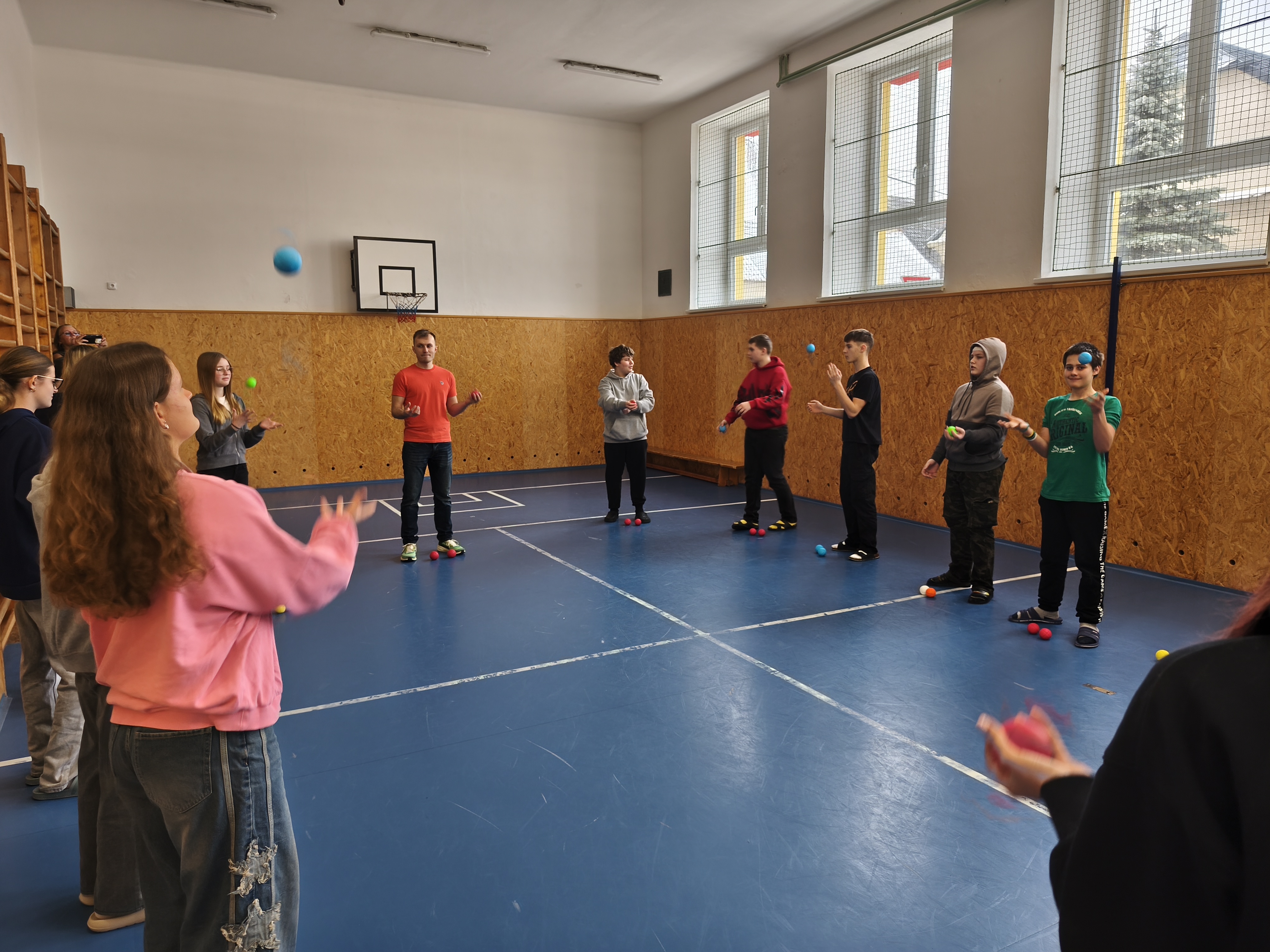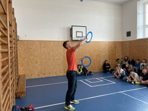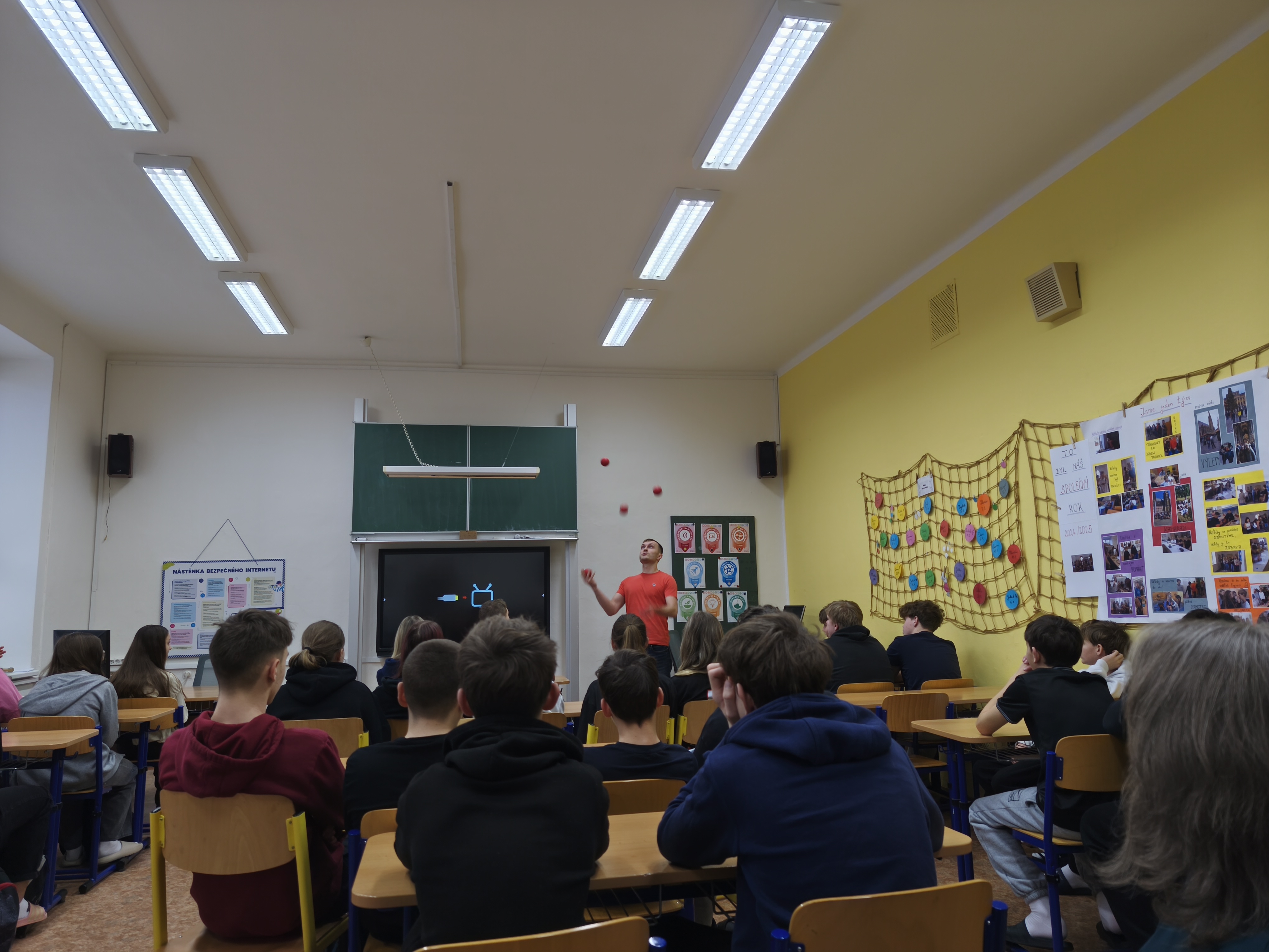 Ve středu 14. ledna navštívil naši školu Václav Peca, skvělý žonglér, úspěšný podnikatel, ale především velmi inspirativní člověk. S žáky 8. a 9. ročníku se podělil o svůj příběh, potom je provedl “žonglovacími” workshopy a nakonec mladším dětem předvedl něco ze svého umění. Velmi děkujeme za ochotu a návštěvu u nás ve škole.