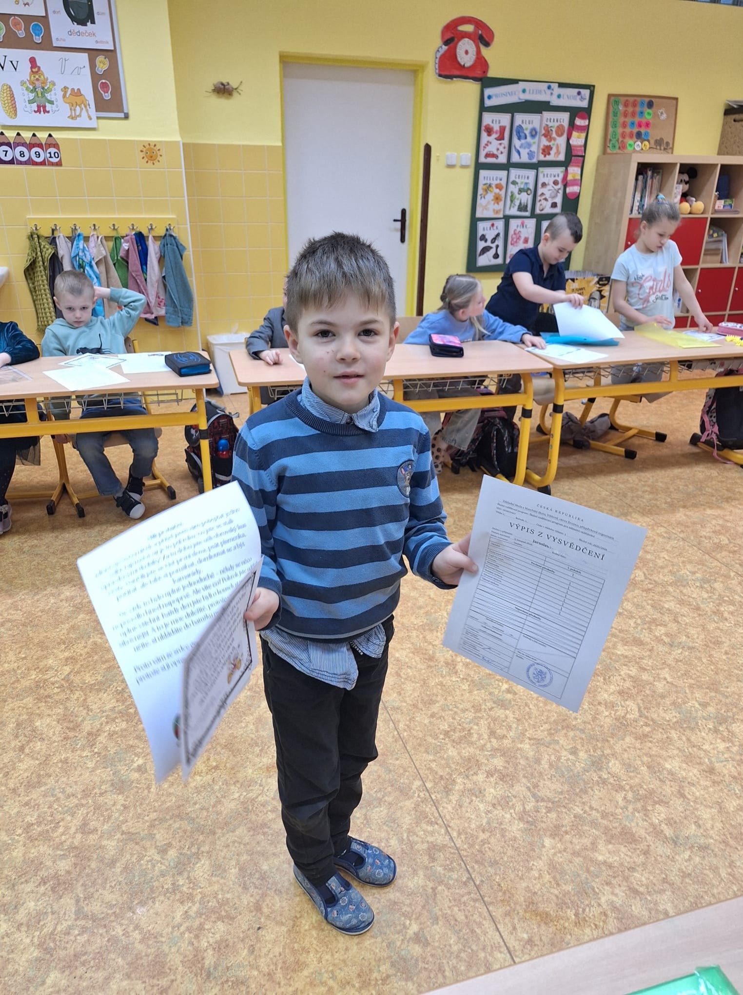 Se svým prvním vysvědčením se děti vydaly pochlubit tam, kde jejich školní příběh vlastně začal – do školky za svými kamarády a paními učitelkami. Nepřišly ale jen na návštěvu. Přednesly veselé básničky o písmenkách, které se od září naučily. A pak už následovalo to nejmilejší – povídání a společné hraní se starými kamarády. Více foto ZDE.