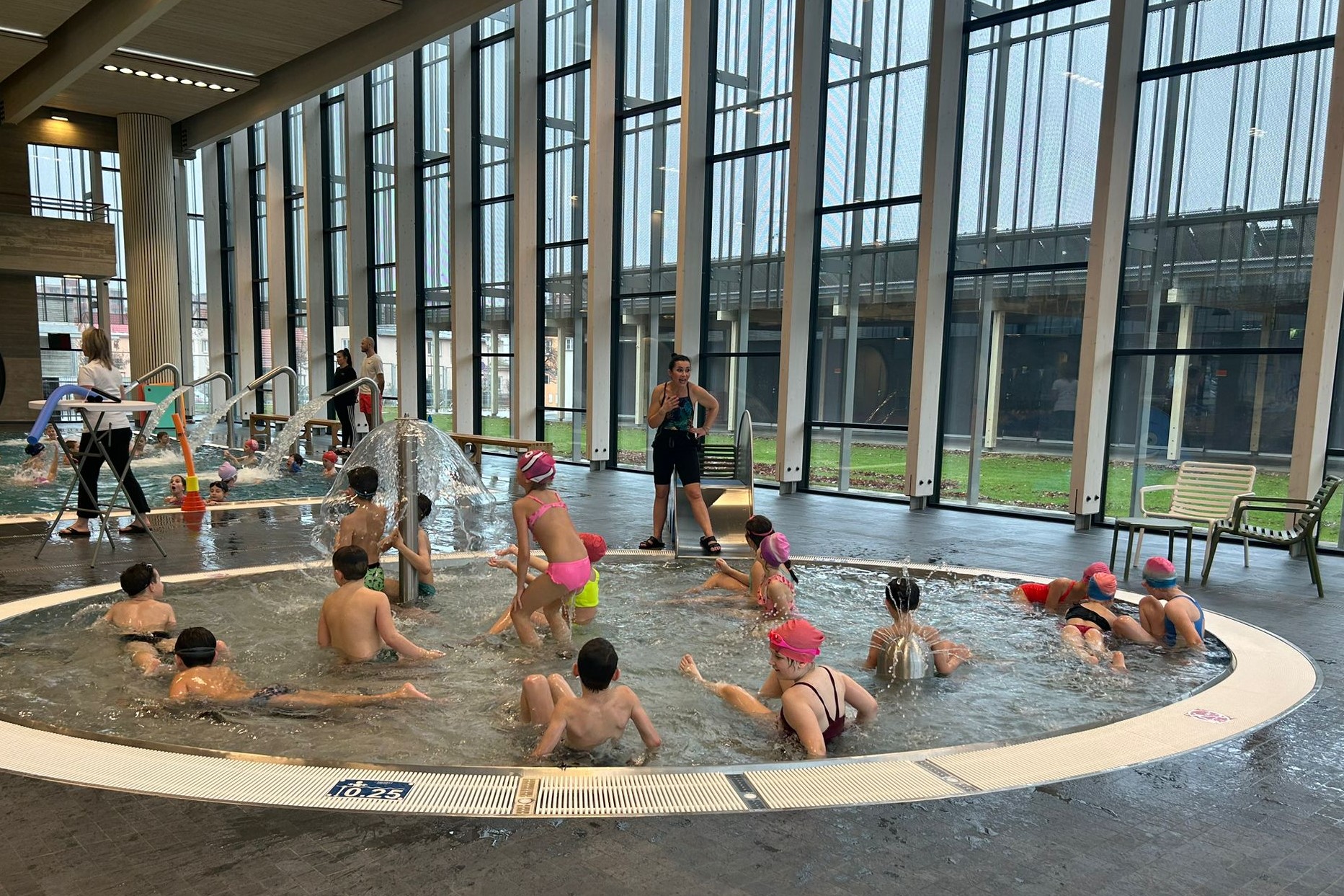 V prvních lekcích se děti seznamují s prostředím bazénu, učí se základy plavání a postupně si zlepšují své dovednosti ve vodě.