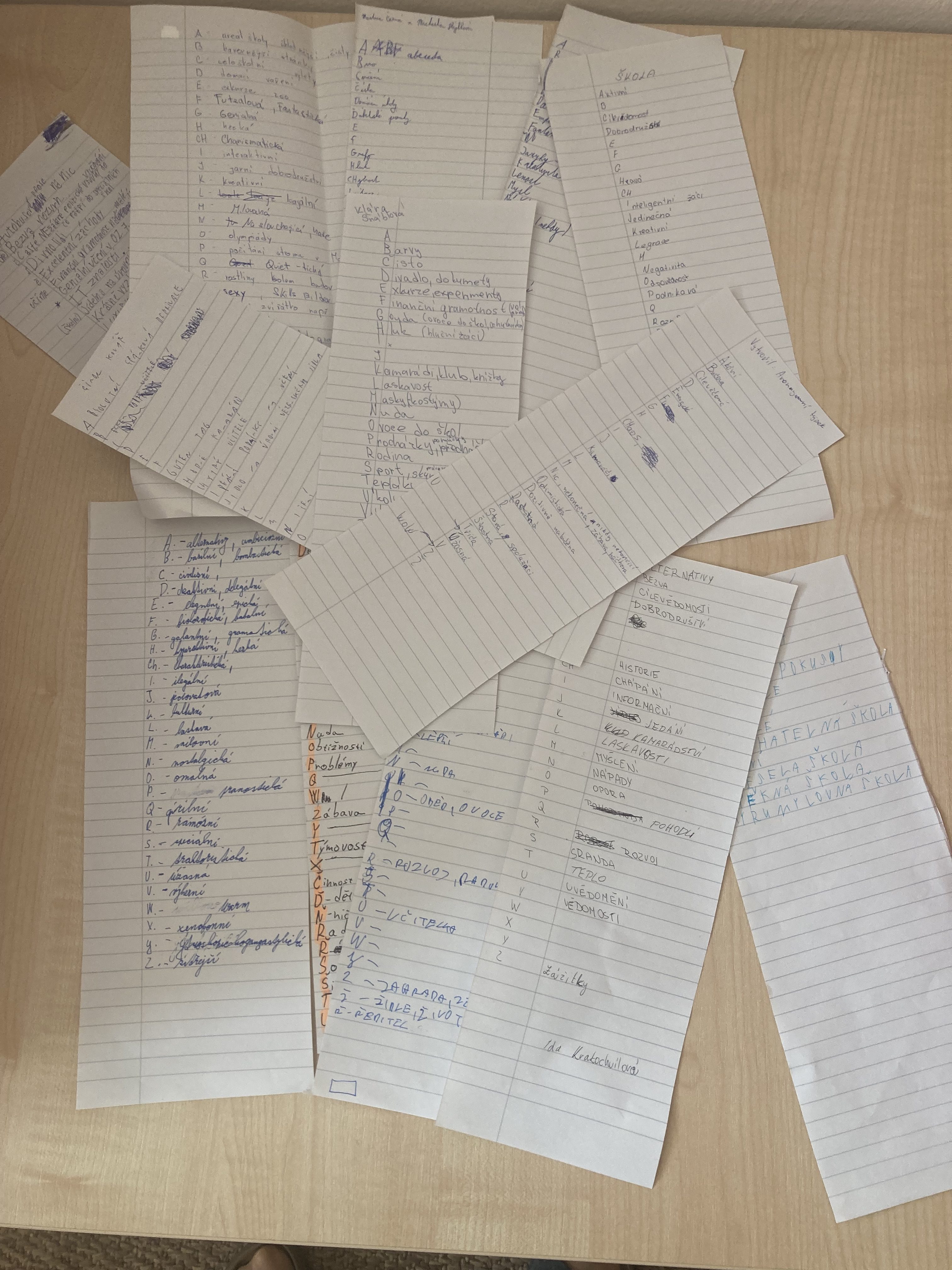 V posledním únorovém týdnu se v jedné z vyučovacích hodin deváťáci zamýšleli nad svou/naší základní školou. Mohli pracovat individuálně nebo ve dvojicích a k tomu zamýšlení se využívali netradiční, ale zajímavou metodu – tzv. metoda Od A do Z, kdy ke každému písmenu abecedy museli vymyslet a napsat něco, co k naší škole patří, čím je známá, co je pro ni charakteristické. Po počátečních rozpacích se na jejich papírech začaly objevovat opravdu velmi zajímavé názory, za které jsme rádi a které budou se svolením autorů dále použity k propagaci školy.