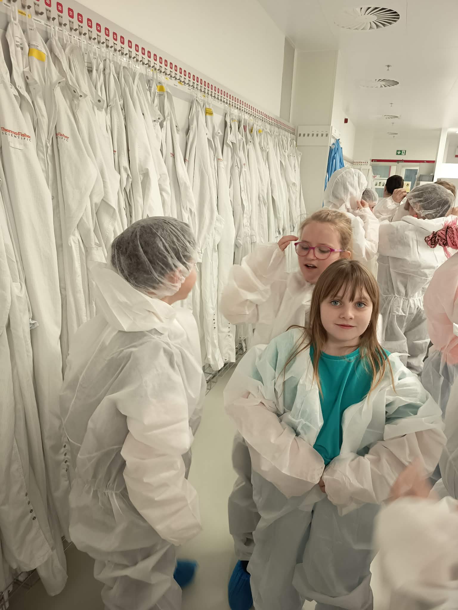 Žáci 3. a 5. třídy navštívili společnost Thermo Fisher Scientific. Během exkurze nahlédli přímo do výroby mikroskopů, které vědcům po celém světě pomáhají zkoumat velmi malé struktury materiálů, buněk nebo virů. Děti se dozvěděly, jak takové přístroje vznikají, a měly jedinečnou příležitost vidět prostředí moderní technologické výroby na vlastní oči. Velkým zážitkem už byl samotný vstup do výrobních prostor – všichni si totiž museli obléknout speciální ochranné obleky, takzvané „skafandry“, aby bylo zachováno bezprašné a dokonale čisté prostředí potřebné pro přesnou výrobu.