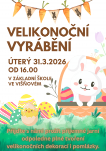 Základní škola Višňové Vás srdečně zve na velikonoční vyrábění, které se uskuteční v úterý 31. 3. 2026 od 16.00 hodin.