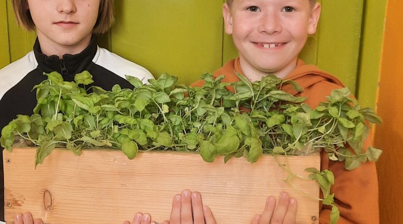 Žákům 2. třídy se podařilo vypěstovat první vlastní bazalku, kterou věnují do školní jídelny. Tam si na ní pochutnáme. V pěstování bylinek budeme pokračovat.