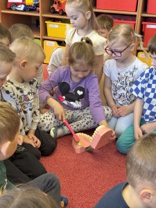 Celé téma jsme odstartovali návštěvou divadelního představení s názvem Křoupat zdravě dá se hravě. Na něj navázala beseda o ústní hygieně s MDDr. Lukášem Wenglorzem, při které se děti dozvěděly, jak správně pečovat o své zuby a proč je důležité omezovat sladkosti.
